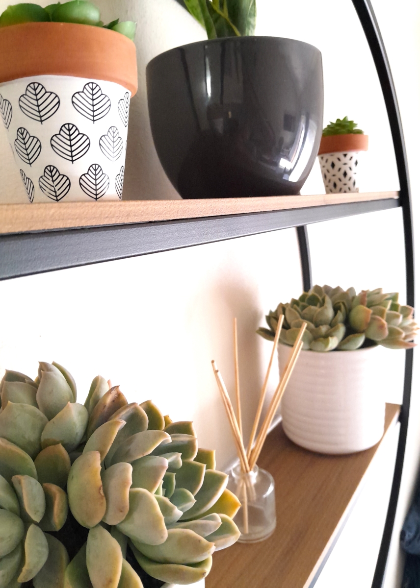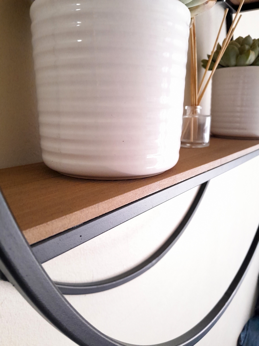 Sleek, modern, minimalistic wall shelf with rounded frame and stylish shelves to store pot plants, books or photos neatly on.